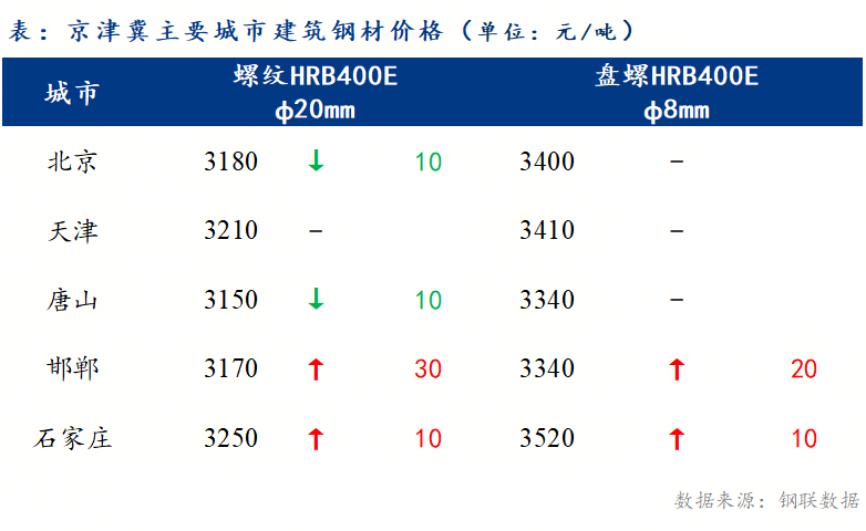 13日北京建筑钢材市场价格持稳运行,现河钢小螺纹3190元/吨,大螺纹3140元/吨,盘螺3400元/吨,成交较弱。昨夜盘期螺小幅下行,今天期螺小幅反弹,现货市场情绪一般,北京现货价格平稳。商家报价较昨天持稳,期现公司随行就市报价出货,终端正常采购,整体市场成交一般。今日唐山迁安松汀钢坯报2940元/吨,持稳。今早期螺小幅上行,早盘商家报价较昨天持稳,期现公司偏低报价,终端观望。下午期螺窄幅震荡运行,商家报价较上午持平,期现公司小幅上调报价,下游采购积极性偏低,全天成交较弱。综合来看,螺纹钢数据弱稳,期螺小幅减仓反弹,北京市场资源到货少,部分规格缺货现象延续,商家心态平稳,预计明日市场价格持稳运行。